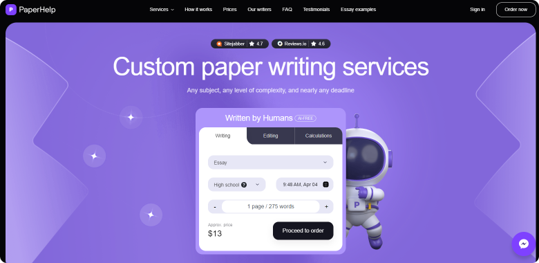 If you are searching for a writing assistant, Paperhelp.org might be one of your best bets. It is a writing service that specializes in all kinds of academic tasks, with a round-the-clock team of supportive agents and top writers. I was impressed by the company’s swift delivery and adherence to the guidelines, which allowed me to call Paperhelp.org a true gem among standard research paper writing services.