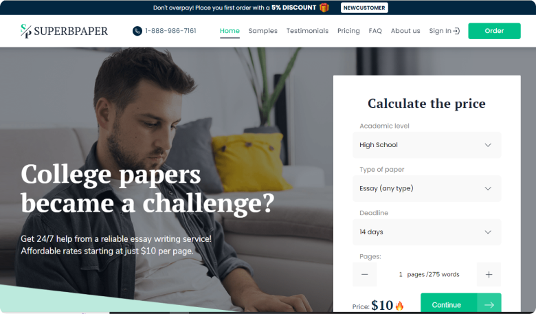 Every time you buy papers online, you must learn more about the prices. Superbpaper.com states that the total cost for your order will depend on the academic level (high school, college, university, Master’s, Ph.D.), urgency (from 14 days to 1 day), and the number of pages you ordered.