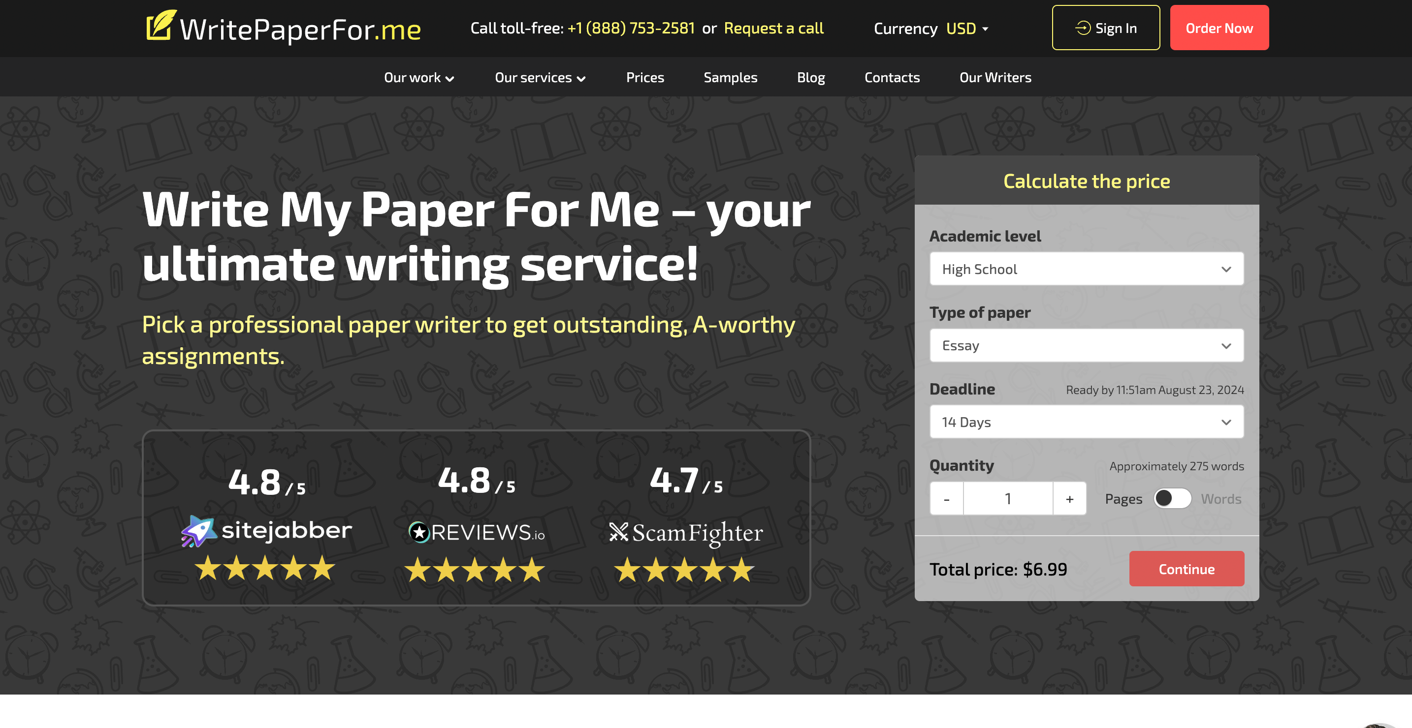 Writing scholarship papers is hard, especially if you have little skills or experience in the area. Nonetheless, if you ever happen to order the essays from Writepaperfor.me professionals, you will understand how real the struggle is. Top-quality papers at the most competitive prices are available for those who struggle with academic projects. Transparency of the policies, reasonable prices, and a high online rating of the company will make your choice easier.